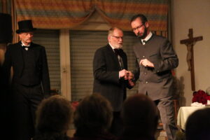 Wird 2026 auch Theater gespielt? „Jajoo dat“. Die Proben laufen auf Hochtouren. Die Schauspieler sind mit Eifer dabei. Der Text sitzt noch nicht 100%ig, aber es läuft. Die Regisseurin bekommt noch mehr graue Haare, aber es läuft. Naja, es sind ja noch 9 Wochen bis zur Aufführung. Ist noch Zeit! Das neue Stück heißt „Alles Bauerntheater“ von Erich Koch. Ein Stück in drei Akten. Die Aufführungen sind am 10.01.2026 um 19.30 Uhr und am 11.01.2026 um 15.30 Uhr in der Schulaula.